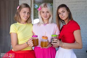 Jill and Kenia in Amour Angels set Wet T shorts